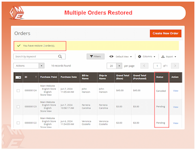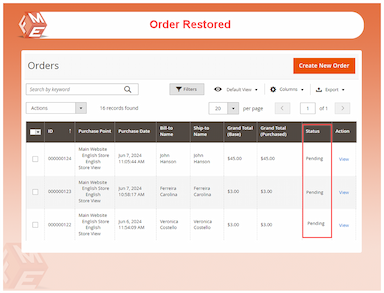 Usprawnij zarządzanie zamówieniami i uniknij utraty sprzedaży spowodowanej przypadkowym anulowaniem zamówienia lub zmianą decyzji. Rozszerzenie Magento 2 Restore Canceled Order pozwala na odzyskanie zamówień anulowanych przez pomyłkę lub na prośbę niezdecydowanego klienta.