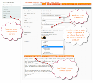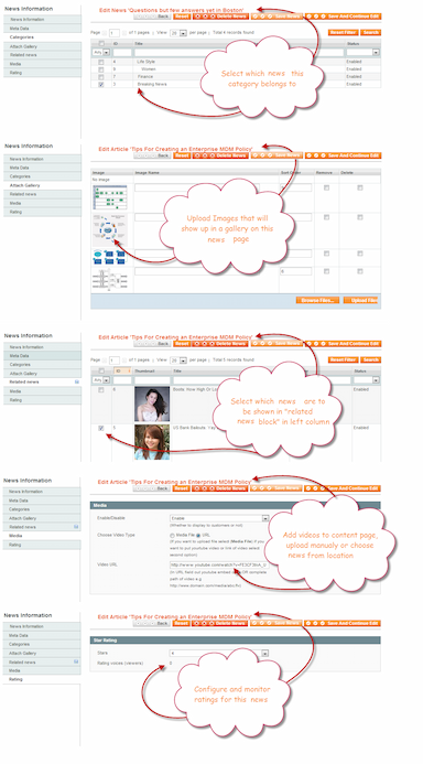 Este módulo permite que você crie uma página de listagem de notícias online que contém todos os ingredientes necessários para fornecer informações úteis aos leitores. As características que tornam seus relatórios de notícias envolventes estão todas incluídas neste complemento. Com a funcionalidade de classificação e comentários do Magento, você pode trazer a conversa da cidade diretamente para sua página de notícias.