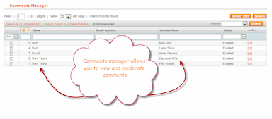 O gerenciador de comentários fornece um painel de comentários, onde você pode visualizar e moderar todos os comentários recebidos.