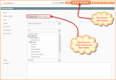 A extensão de banners do Magento, gratuita, com sua interface de administração fácil de usar, permite que você forneça aos seus clientes uma experiência de usabilidade altamente otimizada que seu site, até agora, não tinha. As imagens dos banners são hiperlinkadas para lhe dar flexibilidade de adicionar links de página para descrições detalhadas do produto. Com cabeçalhos de banner, agora você pode adicionar texto relacionado aos banners em exibição.