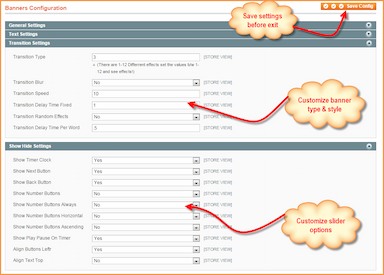 Use o recurso 'Configuração' para personalizar a aparência geral do banner. Esta função, para sua experiência de usabilidade concisa, é dividida em 4 seções: Configurações gerais, Configurações de texto, Configuração de transição e Configurações de Mostrar/Ocultar.