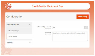 - Fornecer texto a ser exibido na página 'Minha Conta'