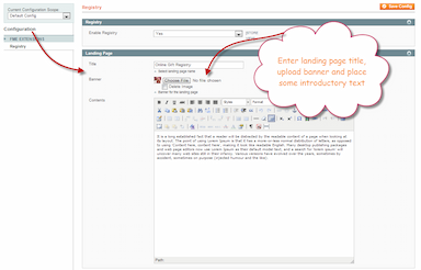 Customize Gift Registry Landing Page