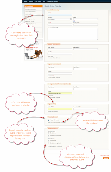 - Allow customers to create a complete list of products in a gift registry for a specific event.