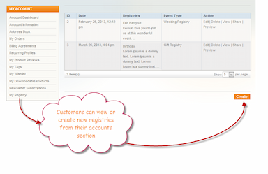 - Let Customers Create & Share Gift Registries