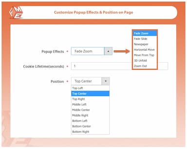 К всплывающим окнам можно добавить эффекты перехода, что поможет привлечь внимание клиентов. Вы можете выбрать позицию в зависимости от дизайна вашего магазина и сделать внешний вид всплывающего окна более заметным. Вы можете установить его в верхний левый, средний или нижний правый угол и так далее.