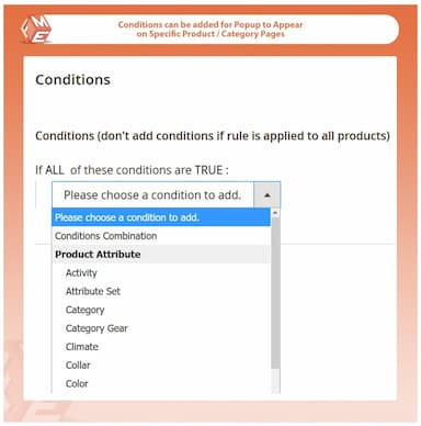 - Установите условия отображения всплывающих окон для конкретных товаров.